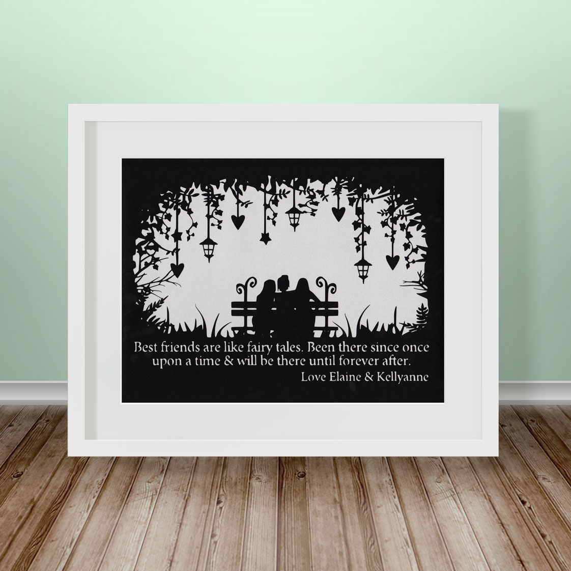 True friends are hard to find, they are there for you through all the highs and lows of life so show them how much you care and appreciate their friendship with this exquisite Fairytale Friends Papercut. It would make the ideal Birthday or Christmas gift, or just as a keepsake to simply to thank them for being there for you!