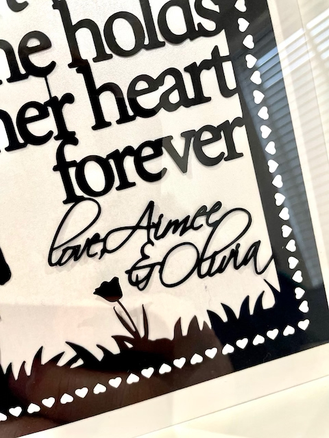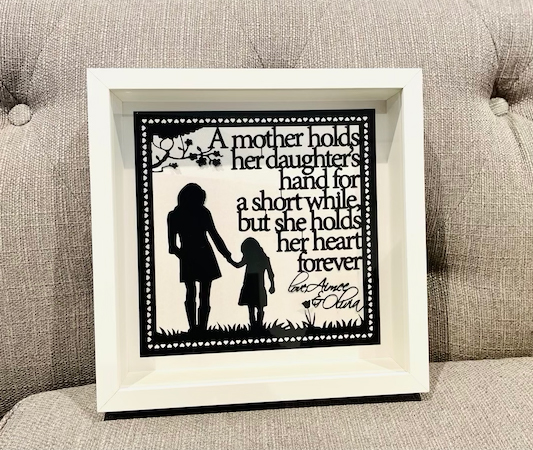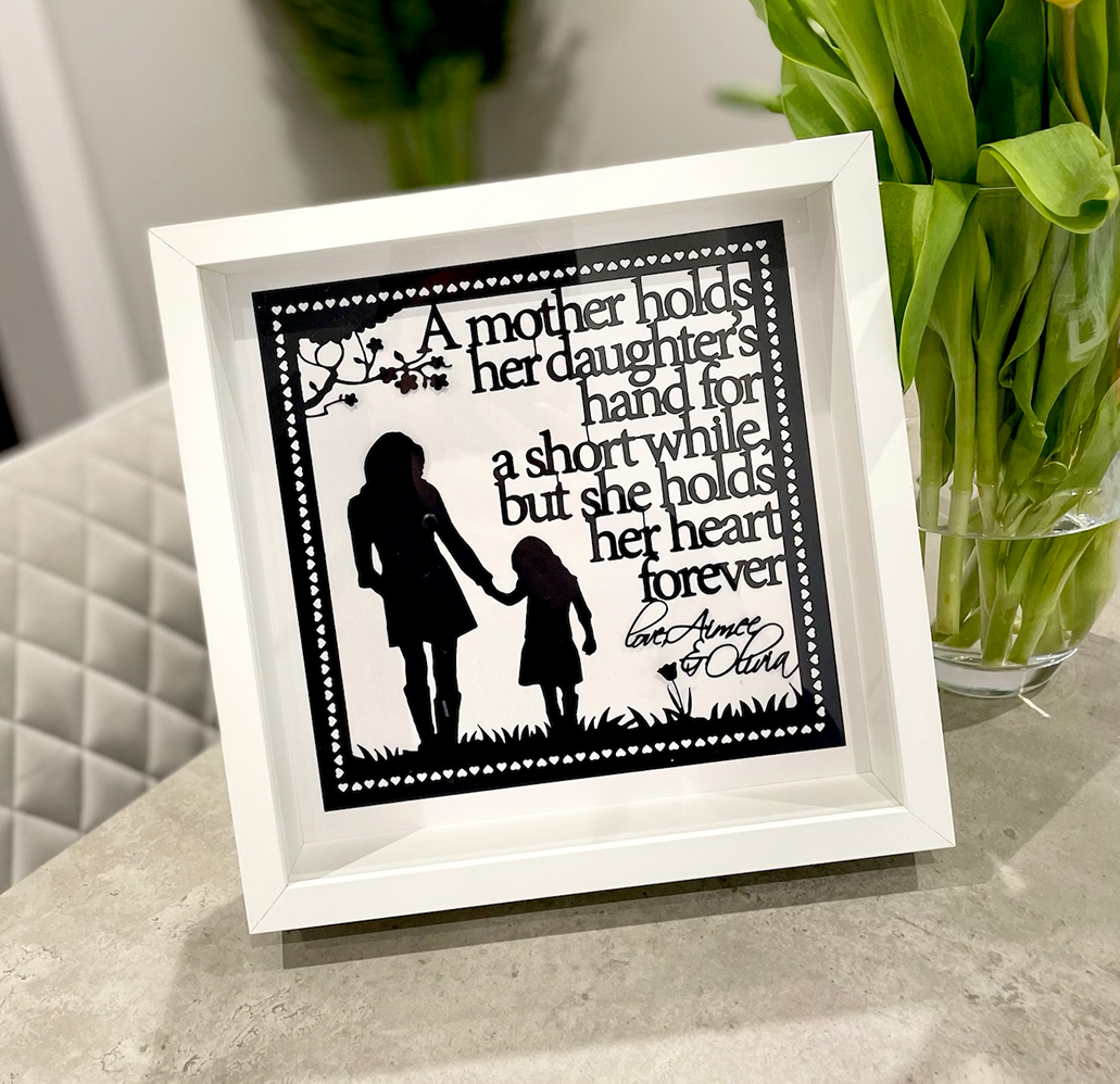 A Mother Holds Her Daughter’s Hand For a Short While, But She Holds Her Heart Forever’ is the inscription on this papercut and this is so true! It is the most perfect gift any daughter could give to her Mother on her special day, whether that be her birthday, Mother’s Day or for Christmas.